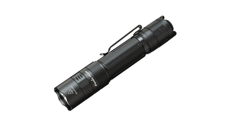 Die Fenix PD32R Rechargeable Tactical Flashlight bietet eine hohe Lichtleistung von bis zu 1400 Lumen (ANSI) und eine beeindruckende Reichweite von bis zu 344 Metern. Die überragende Reichweite (im Verhältnis zur Größe der Taschenlampe) wurde durch die Verwendung der branchenführenden LED Luminus SFT-40 erreicht, die einen sehr gut fokussierten Kegel erzeugt. Die Taschenlampe kann mit einem einzelnen 18650er Li-Ionen-Akku, der im Lieferumfang enthalten ist, oder mit zwei CR123A-Einwegbatterien betrieben werden. Das Aufladen des Akkus erfolgt über einen USB-C Anschluss, der geschickt unter einer Schraubkappe am Kopf der Taschenlampe versteckt ist, wo sich auch eine Anzeige des Ladestands befindet. Die Fenix PD32R verfügt über fünf verschiedene Leuchtmodi, bei denen man zwischen hoher Leistung und langer Lebensdauer (bis zu 70 Stunden) wählen kann. Außerdem verfügt sie über einen Blitzmodus für Aufmerksamkeit und Notsituationen, der sich durch Gedrückthalten der taktischen Taste schnell aus dem Stand aktivieren lässt. Die PD32R besticht nicht nur durch ihre kompakte Größe und ihre großartige Leistung, sondern auch durch ihre Doppelfederkonstruktion, die sie bei der Verwendung an einer Waffe besonders widerstandsfähig gegen Rückstoß macht. An einer Langwaffe kann sie über den Fenix AER-02 Kabelschalter gesteuert werden. Wir können sie daher sowohl für den Einsatz bei Sicherheitskräften als auch für den allgemeinen Outdoor- und Jagdgebrauch empfehlen.